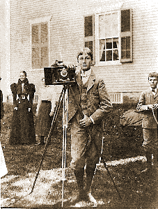 Young F.D.R. posing with camera at the Delano Homestead, Fairhaven, MA.