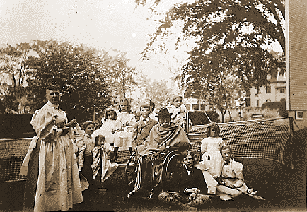 Franklin Delano Roosevelt, standing center, grandfather Warren II, and cousins.